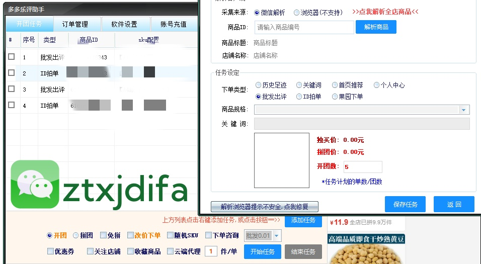 多多做評(píng)價(jià)的助手是一個(gè)為個(gè)人電商運(yùn)營(yíng)者創(chuàng)建的電商工具,成立于2008年6月10日并上線(xiàn)投入運(yùn)營(yíng)。它的主要功能是作為一個(gè)補(bǔ)單平臺(tái),專(zhuān)注于為電商商家提供試用單服務(wù),并且可以靈活地應(yīng)用于拼多多電商平臺(tái)。 多多上評(píng)助手提供了多種功能,包括但不限于可單買(mǎi)、可拼團(tuán)、可開(kāi)團(tuán),支持收藏、關(guān)注、**優(yōu)惠券下單,支持指定SKU、隨機(jī)SKU,以及通過(guò)ID、搜索、多多進(jìn)寶、拼多多批發(fā)等多種拍單方式。此外,它還支持默認(rèn)五星評(píng)價(jià)、帶圖帶文**以及追評(píng)功能。軟件還配備了自動(dòng)收貨地址系統(tǒng),用戶(hù)也可以自行導(dǎo)入收貨地址。 多多評(píng)價(jià)工具由獨(dú)立技術(shù)團(tuán)隊(duì)開(kāi)發(fā),是一個(gè)以軟件為核心載體的自動(dòng)化刷單程序,旨在為用戶(hù)提供方便、快捷、安全、穩(wěn)定、可靠的自動(dòng)補(bǔ)單方案,幫助微小、中型商家快速將想法轉(zhuǎn)化為運(yùn)營(yíng)收益,解放雙手,自動(dòng)化完成開(kāi)團(tuán)補(bǔ)單操作,vx;ztxjdifa |
